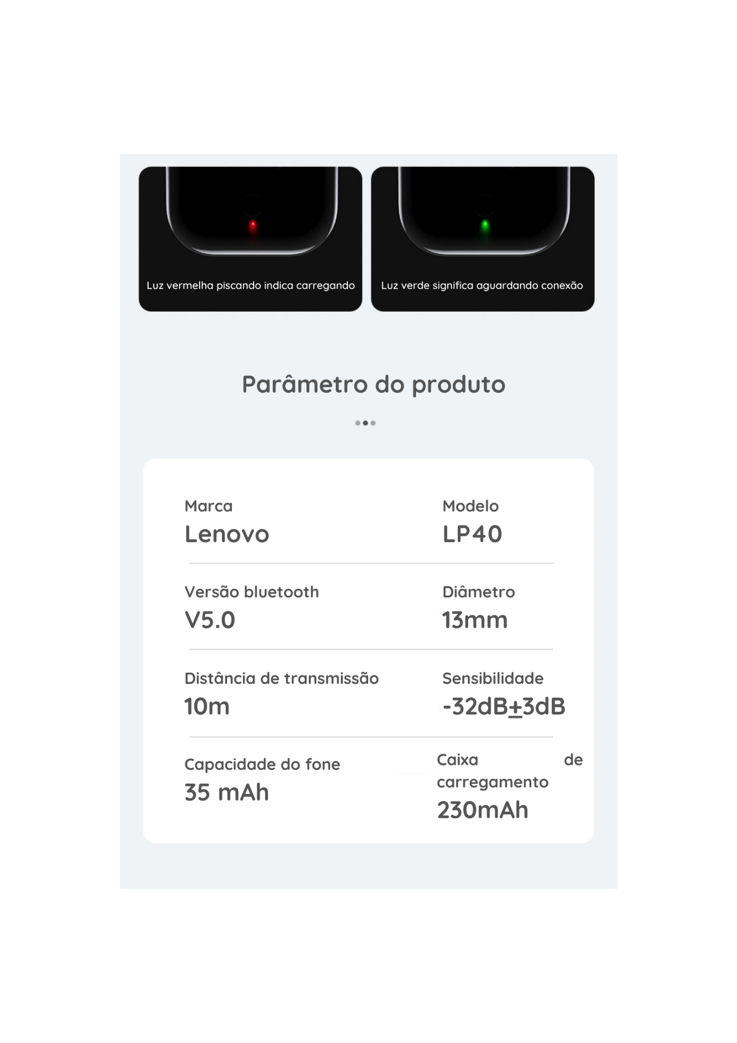 Fone De Ouvido Bluetooth Lenovo lp40 tws